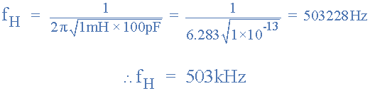 Схема генератора Хартли, имеющая две отдельные катушки индуктивности по 0,5 мГн каждая, предназначена для параллельного резонанса с переменным конденсатором, емкость которого можно регулировать в диапазоне от 100 до 500 пФ. Определить верхнюю и нижнюю частоты колебаний, а также полосу пропускания генераторов Хартли.