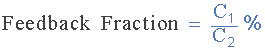 Тогда величина обратной связи, вырабатываемая генератором Колпитца, основана на соотношении емкостей C1 и C2 и является тем, что управляет возбуждением генератора. Это соотношение называется «долей обратной связи» и задается просто как: