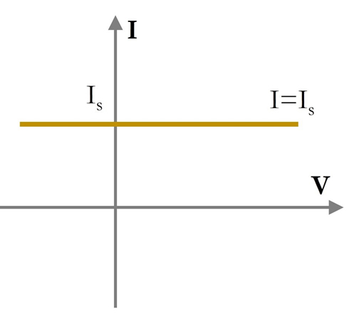идеального источника тока представляет собой прямую линию, параллельную оси X