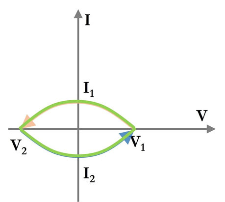 Соотношение ток-напряжение (IV) для устройства представляет собой ток, измеренный при заданном напряжении. Для устройств, которые не подают питание, кривые ВАХ получаются с помощью линейной развертки напряжения. Развертка напряжения включает линейное изменение напряжения для получения соответствующего измеренного выходного тока. Поскольку невозможно физически охватить все напряжения в одно мгновение, важно понимать, что эти измерения производятся также и во времени.