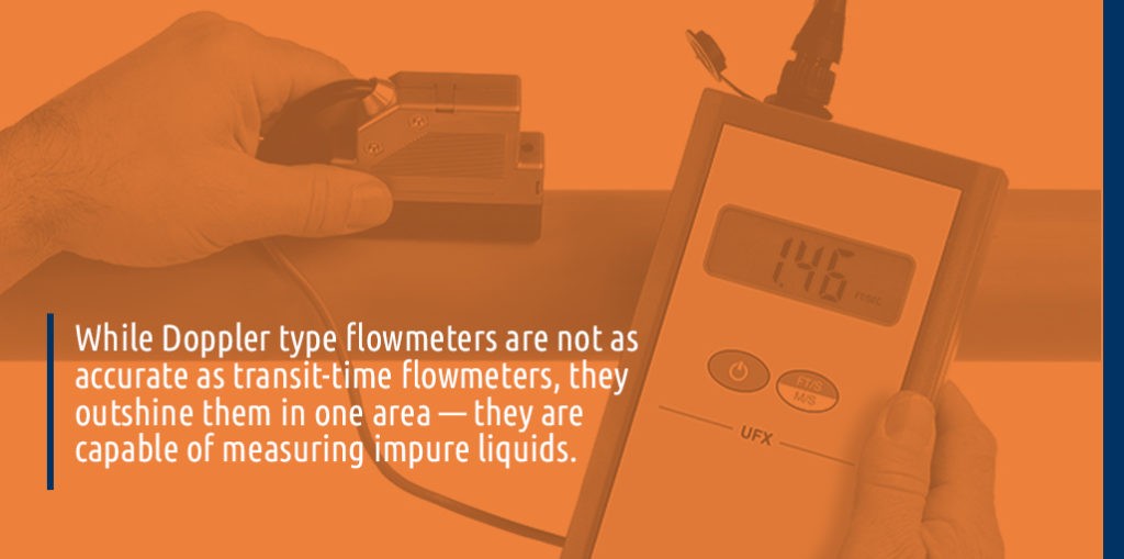 Хотя доплеровские расходомеры не так точны, как времяпролетные расходомеры, они превосходят их в одном — они способны измерять расход жидкостей с примесями. Расходомеры доплеровского типа используют для измерения расхода твердые частицы в жидкости, поэтому их можно применять для жидкостей с большим содержанием твердых частиц и пузырьков воздуха. Однако важно отметить, что возможности доплеровских расходомеров по-прежнему ограничены, поскольку они должны использоваться для жидкостей, способных проводить ультразвуковые волны.