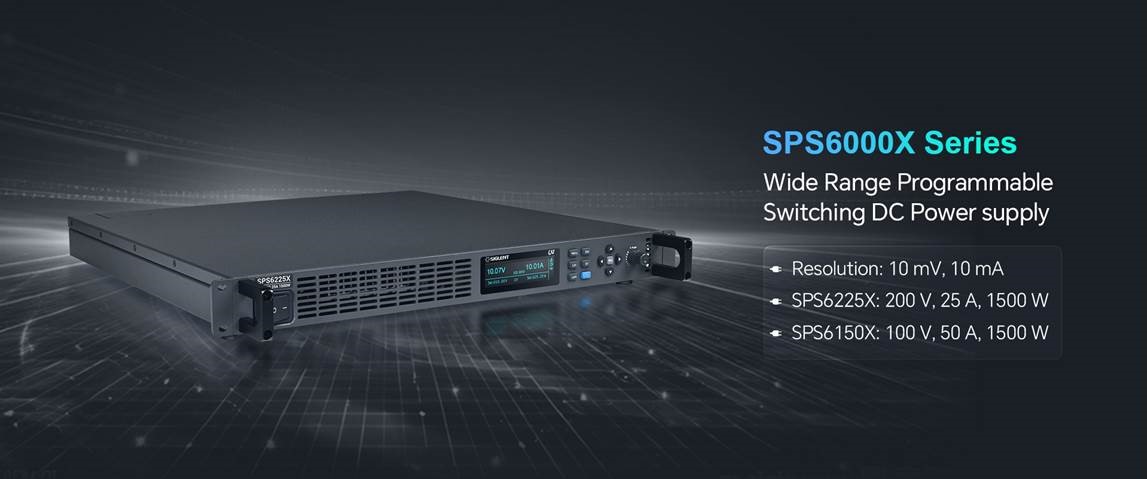 Широкодиапазонный программируемый импульсный источник питания постоянного тока серии SPS6000X, включающий SPS6225X с номинальной выходной мощностью 200 В/25 А и SPS6150X с номинальной выходной мощностью 100 В/50 А. Каждый блок обеспечивает выходную мощность до 1,5 кВт, а несколько блоков можно подключать параллельно для увеличения общей мощности для приложений с высоким током. Серия SPS6000X имеет яркий 3,12-дюймовый OLED-дисплей, удобный интерфейс и превосходные показатели производительности. Минимальное разрешение составляет 10 мВ/10 мА. Время нарастания выходного напряжения и тока регулируется. Он имеет два выходных режима: постоянное напряжение и постоянный ток. Он также поддерживает режим программирования последовательности списков для легкого выполнения профилей шага напряжения или тока. Функции безопасности включают защиту от перенапряжения, перегрузки по току, ограничения мощности и перегрева.