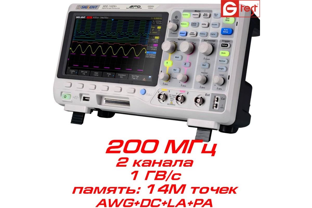 Значительный объем внутренней памяти 14М точек (7М точек/канал), высокая скорость выборки 1,0 ГВ/с, а также возможность декодирования данных на шинах последовательной передачи, выполнять анализ мощности, использовать интеллектуальную систему синхронизации, в том числе для HDTV, а также генератор произвольных форм сигналов - далеко не полный перечень преимуществ осциллографов Siglent SDS1202X+.