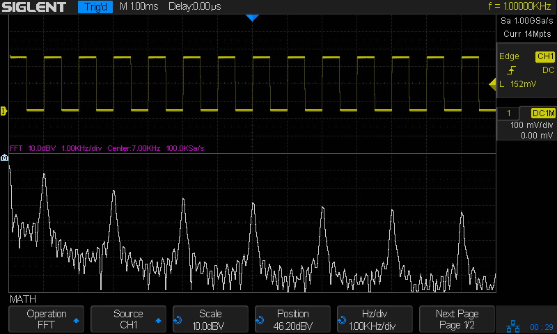 Большой объём памяти 14М точек позволяет использовать высокую скорость выборки для высокой детализации сигнала. Аппаратно реализованная функция масштабирования обеспечивает удобство её применения в поиске и анализе интересующих элементов осциллограммы.