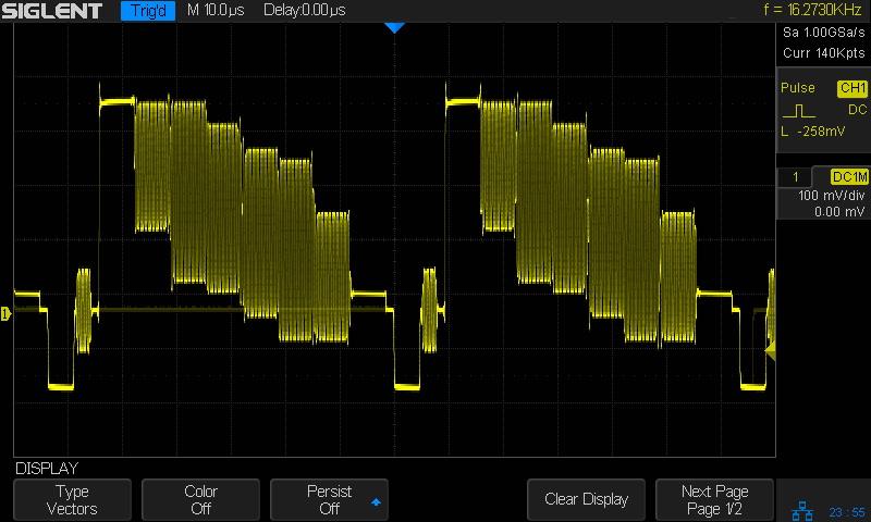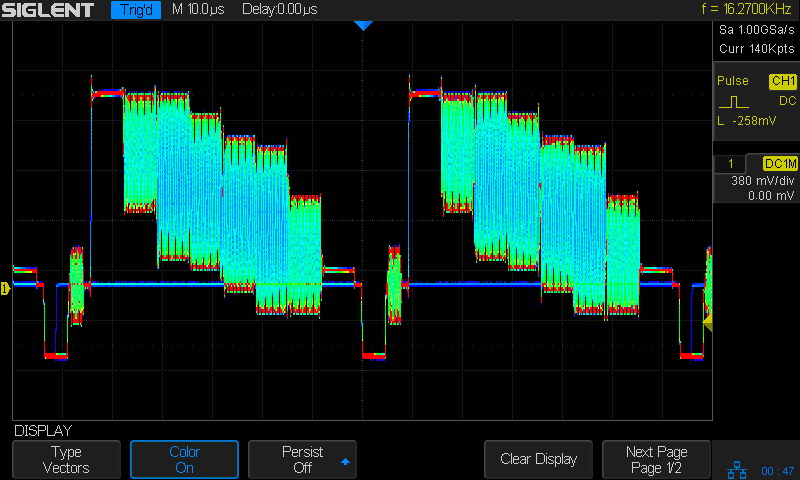 Для визуализации частоты повторения формы осциллограммы используется цветовая 256-ти уровневая градация интенсивности, предлагая тем самым качественно новый подход в отображении динамических особенностей сигнала.