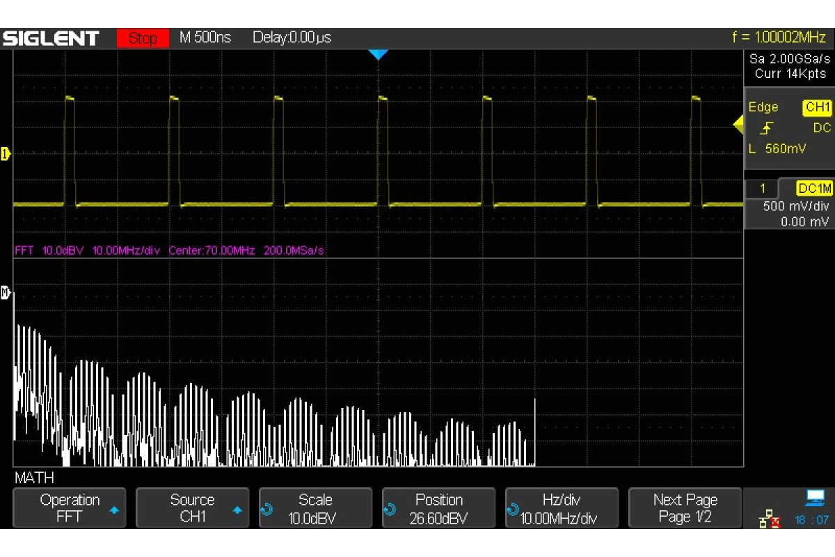 Больший объем памяти для каждого канала 70М точек (140М точек - общий для 2-х каналов), скорость выборки 2,0 ГВ/с совместно с новой архитектурой обработки данных, мощной системой синхронизации, позволили реализовать уникальные возможности захвата и детального анализа трудноуловимых сигналов, цифровых потоков на шинах последовательной передачи. Расширенные функции математического анализа, анализа мощности (качества энергии) обеспечивают преимущество в решении самых сложных задач. Возможность активации функций логического анализатора, генератора сигналов произвольных форм самым анализа мощности, использовать интеллектуальную систему синхронизации, в том числе для HDTV, а также генератор произвольных форм сигналов - далеко не полный перечень преимуществ осциллографов Siglent 2000х-й серии.