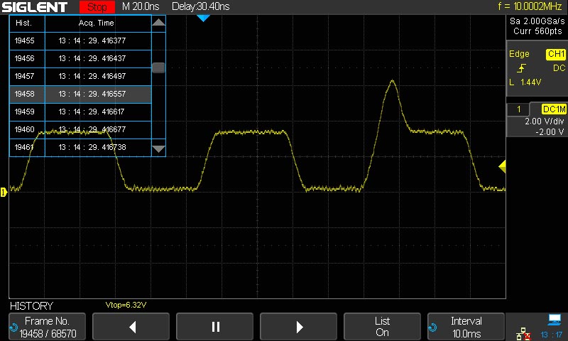 Функция регистратора позволяет выполнить запись во внутреннюю быструю память осциллографа до 80000 кадров / осциллограмм с возможностью последующего просмотра.