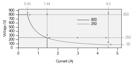 В, 40 В, 80 В, 160 В, 250 В и 800 В и максимальной выходной мощностью 360 Вт,