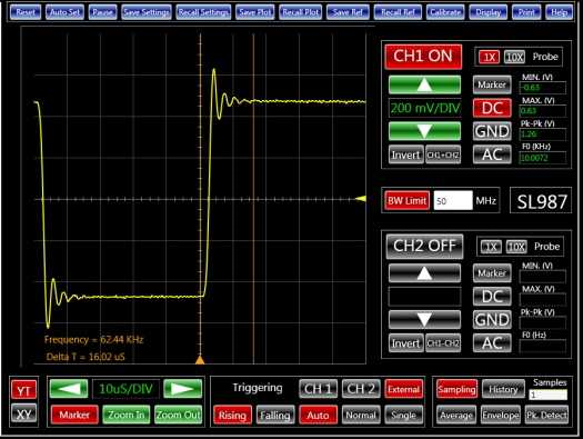 Рис.5: Оценка фильтра с помощью осциллографа.