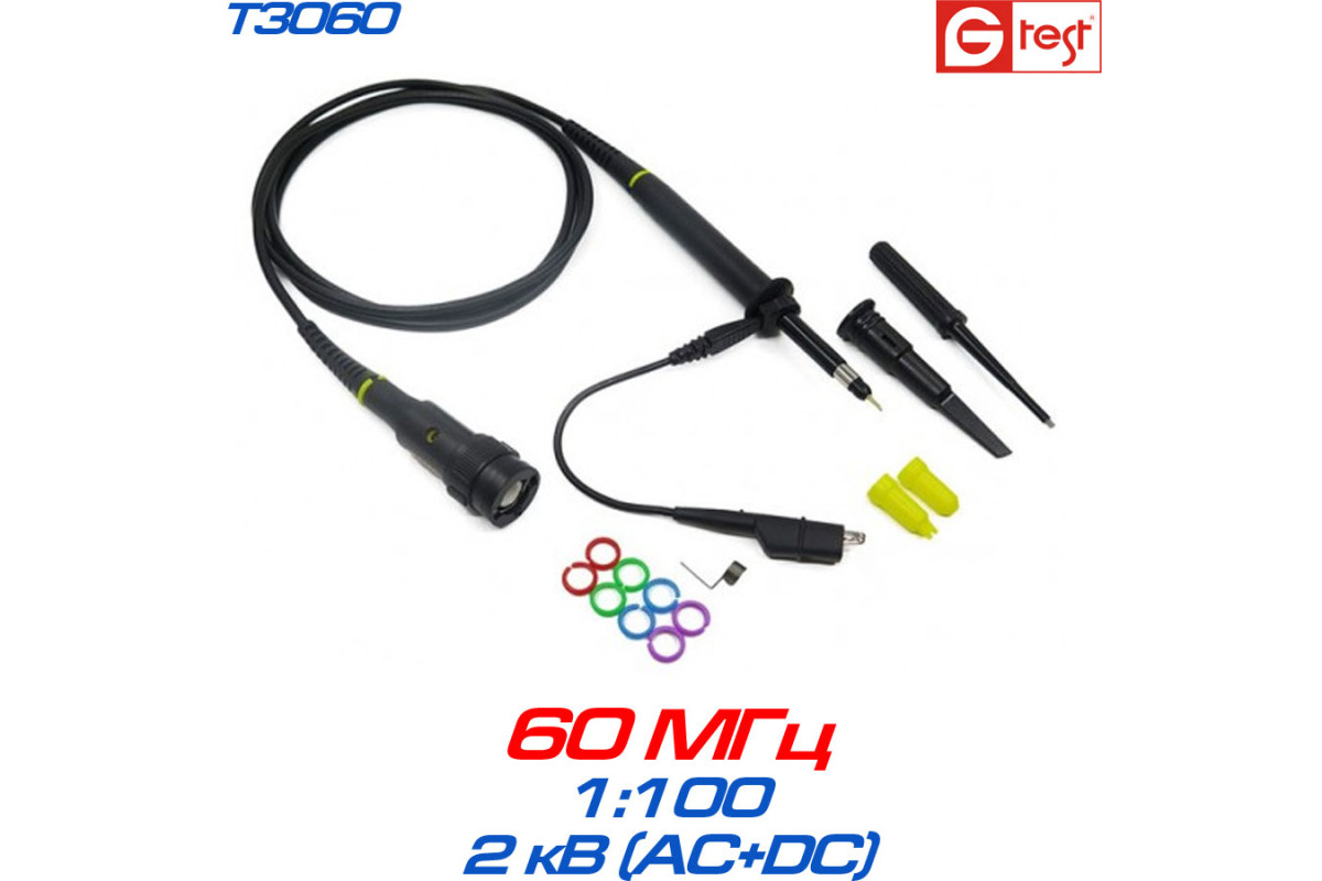 T3060 высоковольтный пробник с полосой пропускания 60 МГц, имеет коэффициент деления 1:100.