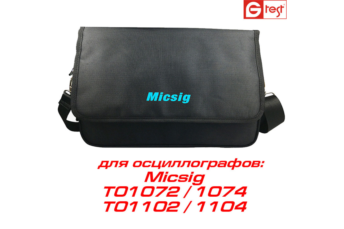 Сумка для осциллографов Micsig tBookmini TO1000. Сумка изготовлена из качественных материалов, с нанесённым лого компании, имеет карманы для зарядного устройства и пробников.