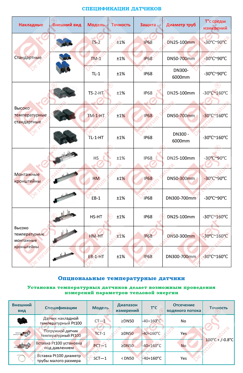 | Температура | для датчиков TS-2HT: от -30°С до 160°С. | |