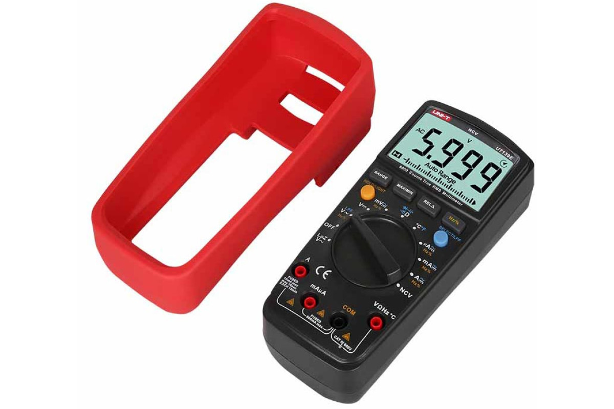 Мультиметр UT139E оснащён функциями автоматического и ручного режима выбора диапазона измерений, измерения True RMS, тестирования диодов и проверки целостности цепи со звуковой индикацией, имеет полосу пропускания от 45 Гц до 1 кГц, АЦП на 6000 отсчётов, обеспечивающий высокую точность измерений, функцию удерживания данных измерения на дисплее, функцию максимальных и минимальных значений. Данная модель предназначена для электриков и имеет следующие особенности и специальные функции: степень защиты CAT III 600 В, большой LCD TN дисплей, 31- сегментная аналоговая шкала, что дает лучшее визуальное представление результатов измерений, функция низкочастотного фильтра LPF, функция детектирования высокого напряжения NCV, функция низкоимпедансного входа LoZ.