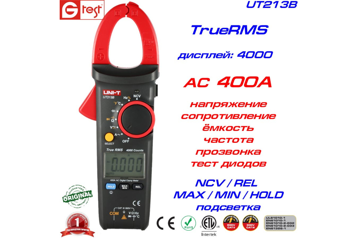 UT213B, 400A AC, токоизмерительные клещи UNI-T, с функцией измерения напряжения, ёмкости, сопротивления и температуры
