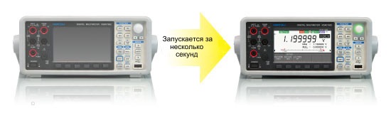 Измерение можно начать немедленно, задав информацию о настройке при включении питания. Мультиметр запускается за несколько секунд.