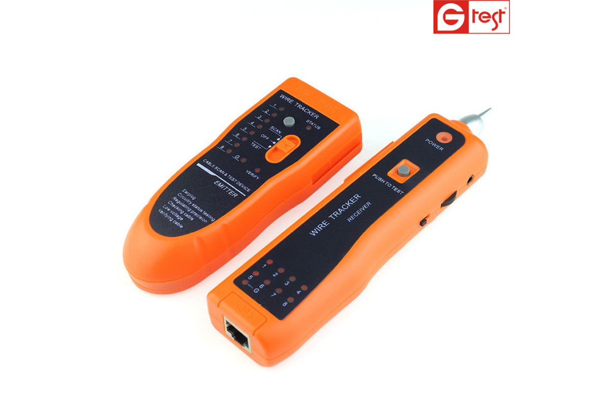 WTr-1 (JW-360) многофункциональный искатель скрытой проводки. Данный кабельный трекер (кабелеискатель) состоит из двух отдельных приборов: генератора-передатчика и приёмника, применяется для поиска скрытой проводки, локализации обрыва и короткого замыкания кабелей коммуникаций без повреждения изоляции, а также определения состояния линий телефонной связи. Wire Tracker реализован в очень компактном пластиковом корпусе, отличается малой массой прибора и простотой эксплуатации. Принцип работы данного трассоискателя Wire Tracker состоит в детектировании электромагнитного поля, создаваемого генератором вокруг тестируемого проводника. Особенностью данного трассоискателя является наличие режимов сканирования и тестирования с со светодиодной и звуковой индикацией процессов. Данный трекер способен проводить тестирование не только кабелей с разъёмами RJ-11 и RJ-45, а и отдельного проводника, используя адаптер с двумя зажимами типа "крокодил". Питание передатчика и приёмника обеспечивается 2-мя батареями распространённого типоразмера 6F22 "крона".