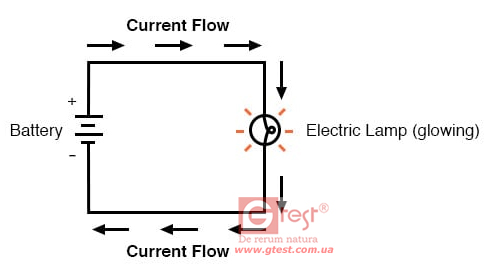 Электрическая цепь формируется тогда, когда создается проводящий путь, позволяющий электрическому заряду непрерывно перемещаться. Это непрерывное движение электрического заряда по проводникам цепи называется током, и его часто называют «потоком», точно так же, как поток жидкости через полую трубу.