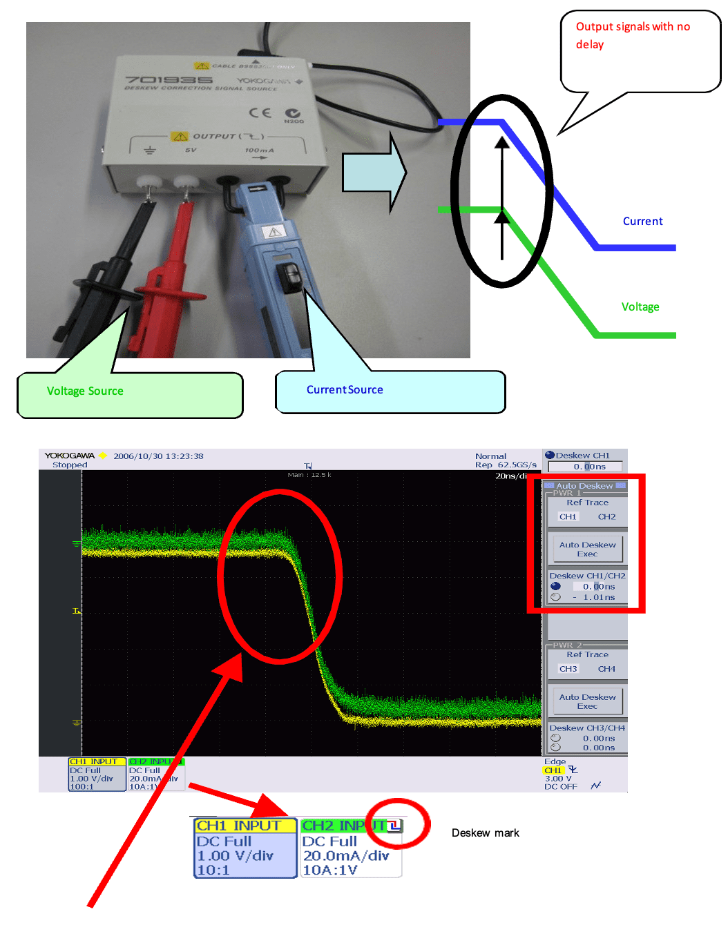 Рисунок 23 – Автоматическое исправление перекоса (DL9000). Автоматически устанавливает задержку (распространения) сигналов тока и напряжения на ноль, включая используемый зонд.