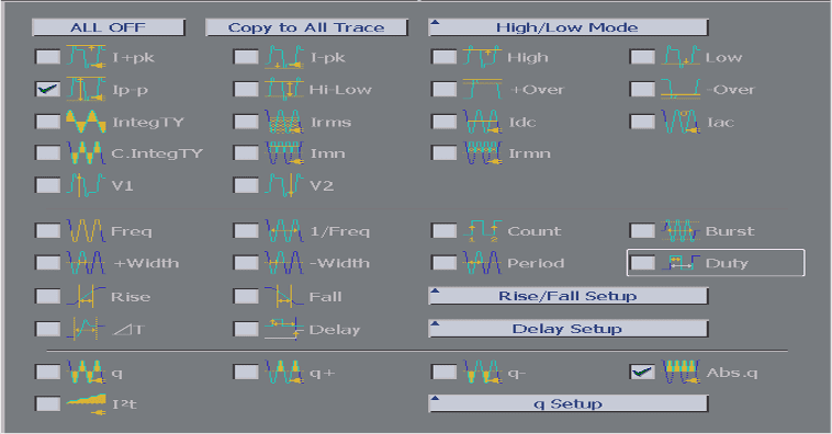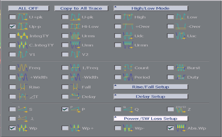 Функция анализа источника питания DL9000 поставляется с множеством операторов параметров для измерения качества линии (питания), таких как полная мощность, активная мощность, коэффициент мощности и другие характеристики.