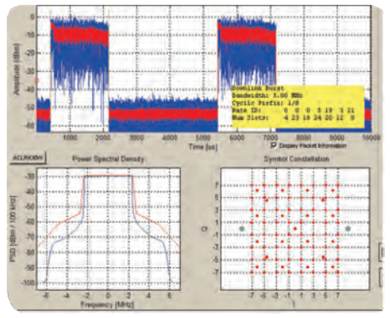 RSA3408B — это наилучший инструмент и для решения проблем, и для тестирования на соответствие техническим условиям. В данном случае выполняется анализ WiMax с помощью ПО RSA-IQWIMAX.