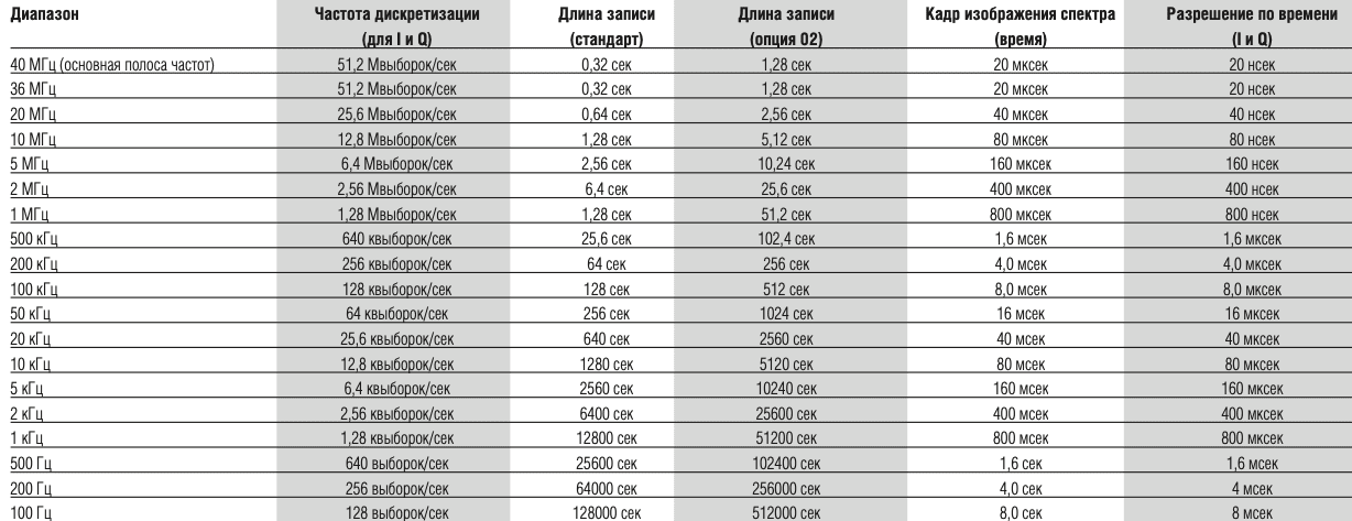 Входы IQ (опция 03): 40 МГц.