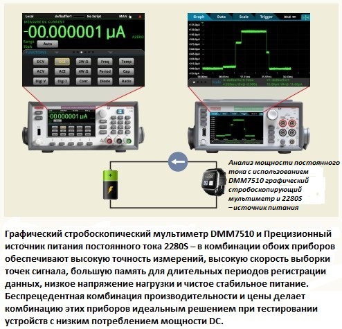 • Достижение высокой точности при измерениях тока нагрузки в широких диапазонах - типичный профиль энергопотребления постоянного тока для устройств с низким энергопотреблением имеет широкий диапазон тока нагрузки от нано-ампер до ампер. Большинство приборов не обладают достаточной точностью/чувствительностью на всех диапазонах.