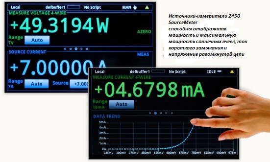 Источники-измерители Keithley модели 2450 и 2460 SourceMeter® при наличии графического пользовательского интерфейса Touch, Test, Invent® значительно упрощают процесс измерения энергоэффективности, если использовать для этого технологию тестового скрипт-процессора Keithley’s (TSP®) и виртуальную объединительную плату TSP-Link®. При задействовании технологии TSP и коммуникационной шины TSP Link, измерения энергоэффективности, где требуется наличие двух приборов, могут быть осуществлены быстро и просто через фронтальную панель одного прибора, когда на эту панель будут выведены автоматически рассчитанные параметры энергоэффективности.