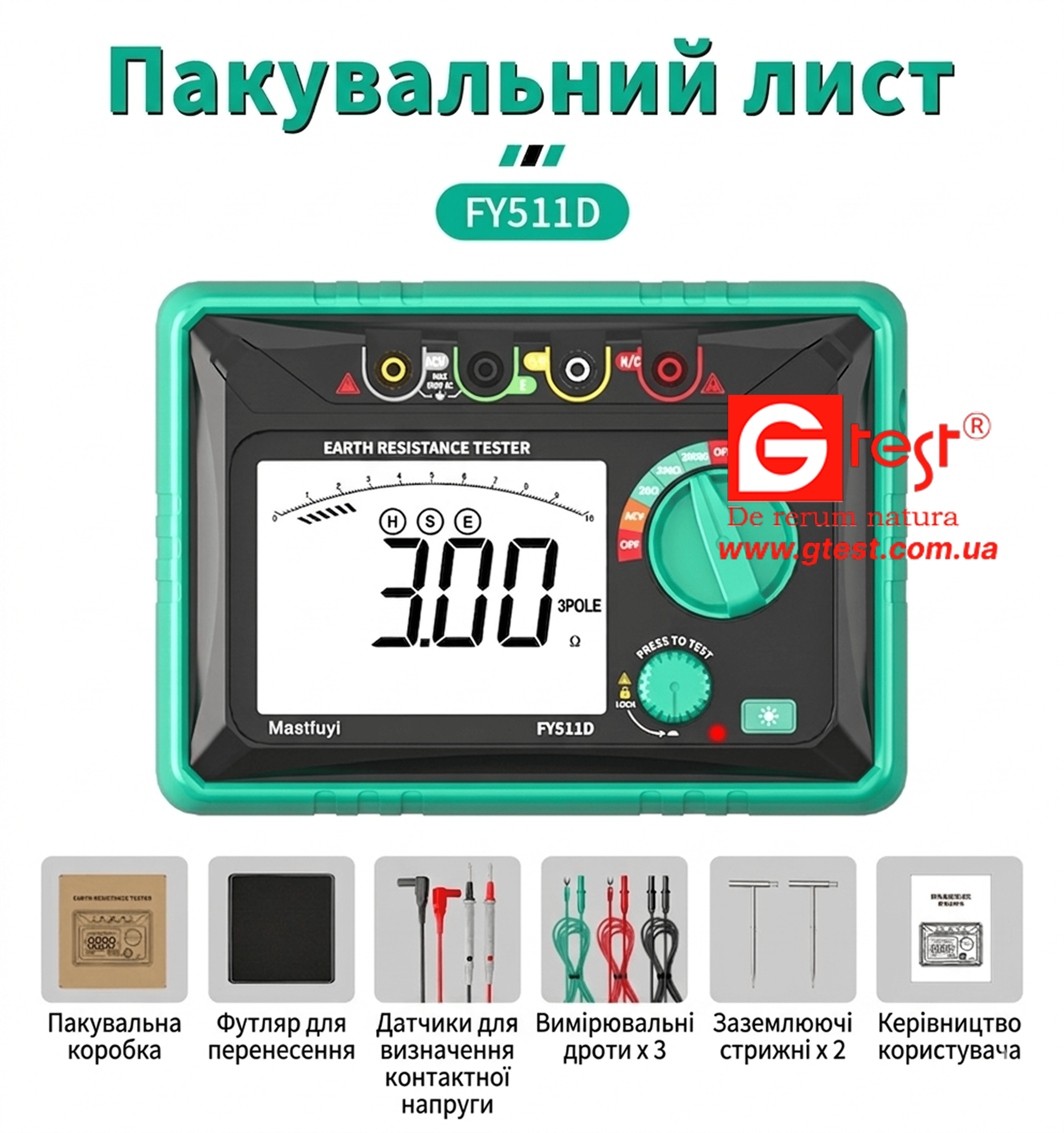 FY511D Тестер опору заземлення 0,01 Ом - 2 кОм