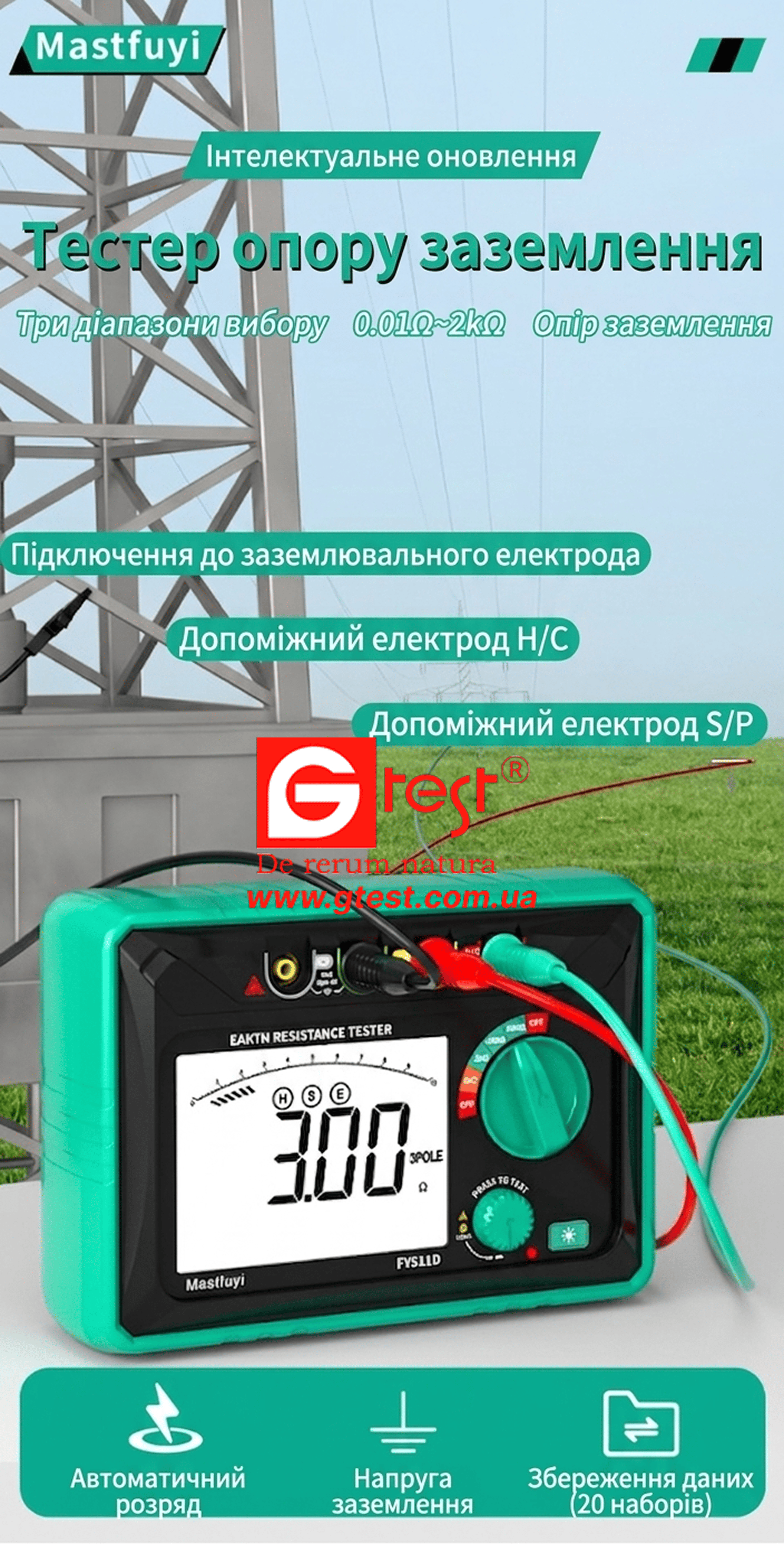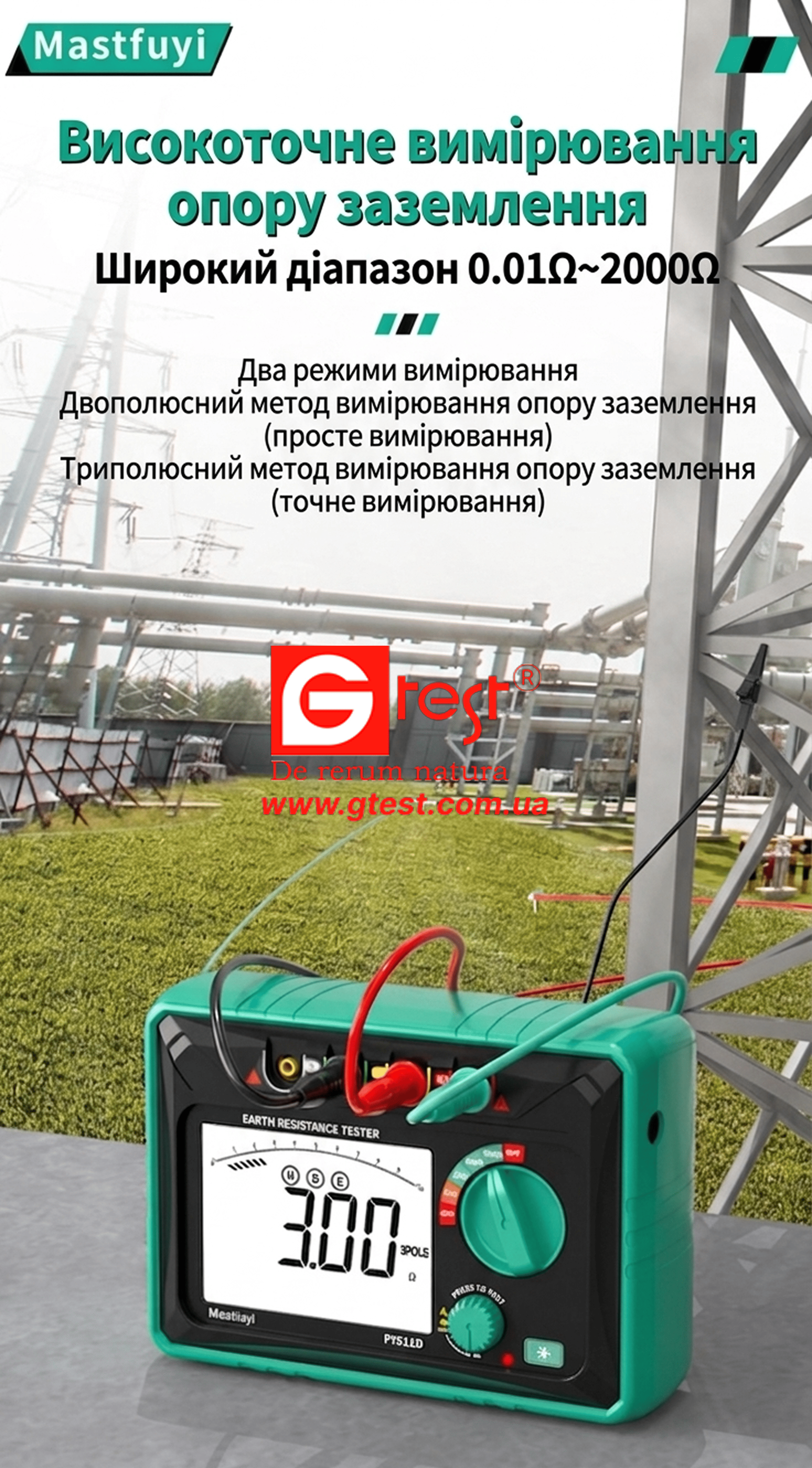 Тестер сопротивления заземления Mastfuyi — это комплексное решение для проверки электробезопасности. Это интеллектуальное устройство обеспечивает точные измерения для систем заземления, молниезащиты и безопасности оборудования. Благодаря двум режимам измерения, хранению данных и четкому дисплею с подсветкой, это идеальный инструмент для электриков, инженеров и специалистов по техническому обслуживанию зданий.