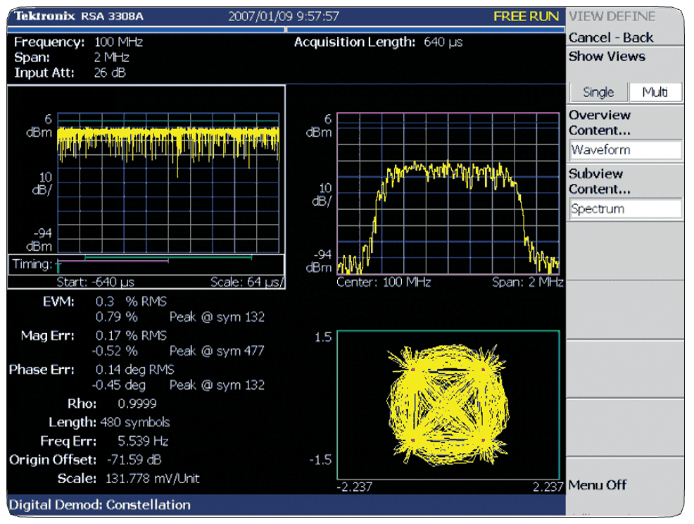 Измерение амплитуды вектора ошибки/Точечная диаграмма