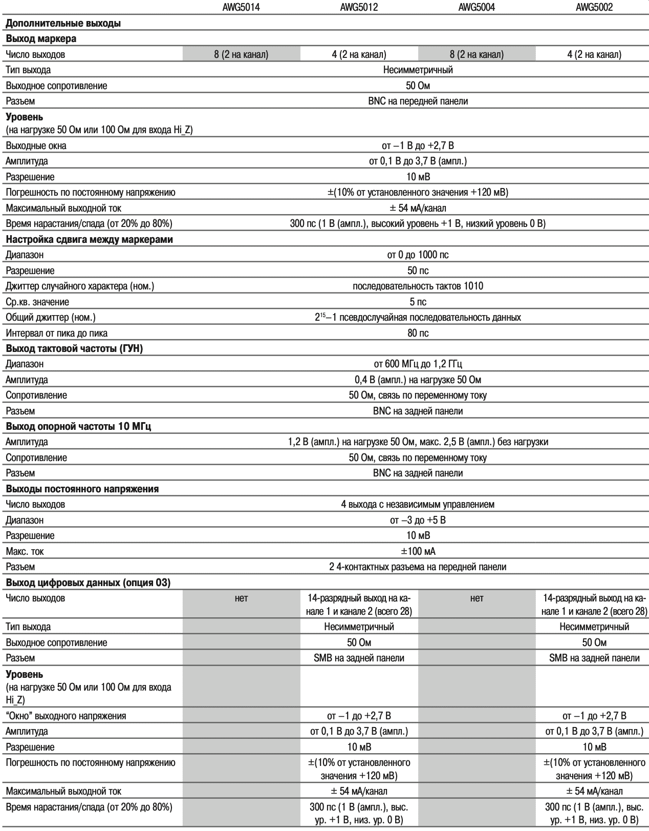 Модели AWG5012 и AWG5002 могут генерировать два аналоговых сигнала с четырьмя цифровыми выходами маркеров, поддерживая опционально до 28 цифровых выходов (каналы данных Ch1 и Ch2). В результате Вы получаете генератор смешанных аналоговых и цифровых сигналов – наиболее универсальное решение на все случаи жизни, включая бытовую электронику, например, преобразователи ЦАП/АЦП и устройства обработки изображений.