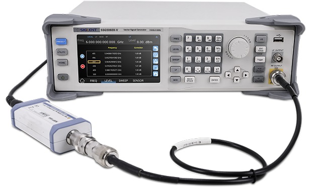 Чем длиннее канал передачи информации, тем больше потерь в кабеле. Для обеспечения надлежащей ровности перед тем, как сигнал поступит на тестируемое устройство, требуется корректировка этой ровности для компенсации потерь, вызванных линией передачи и переключателями сопротивления. Генераторы SSG5000X поддерживают режим корректировки ровности посредством внешнего датчика мощности (в поставку не включён).