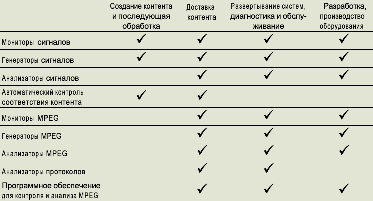 - Тестирование интегрированных приемников-декодеров и абонентских приставок (IRD/STB) на стадии разработки и производства