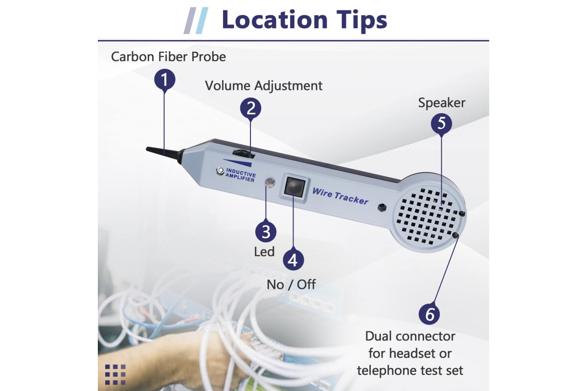 - Широко используется для обслуживания кабелей и проводов. Область измерения включает отслеживание линии, проверку короткого замыкания и идентификацию свободного/занятого/звонка.