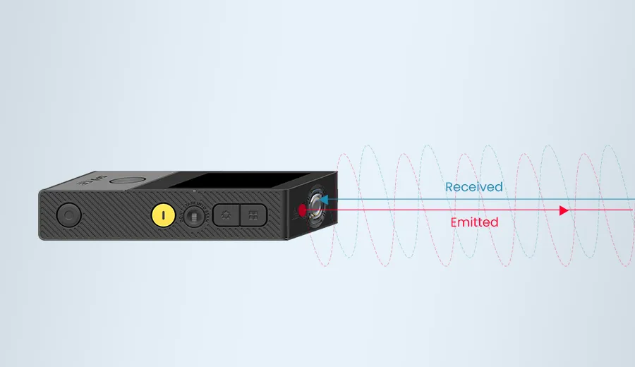 Лазерные рулетки используют технологию непрямого измерения времени пролёта (iTOF) для определения расстояний. Ниже приведено пошаговое описание работы iTOF: