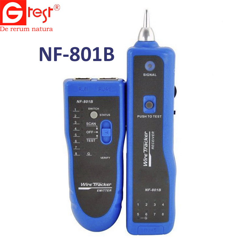 NF-801B, NF-811 – простые кабельные тестеры с функциями трассоискателя, представляют собой устройства для проверки верности распиновки коммуникационных сетей и трассировки скрытой проводки. Кабельные трассоискатели состоят из передатчика и приемника и позволяют находить и отслеживать компьютерные и телефонные кабели, определять места обрыва и короткого замыкания.