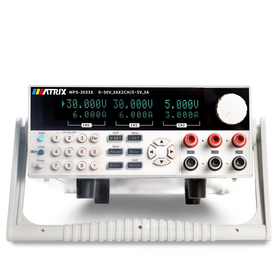 MPS-3033Х - программируемый трёхканальный источник питания постоянного тока 0-30 В, 0-3 А модельного ряда MPS-X/XP производства компании MATRIX.