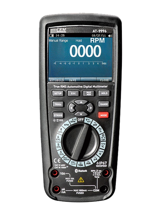 AT-9996 представляет собой профессиональный автомобильный цифровой мультиметр с функцией генерирования среднеквадратичных значений. Прибор обладает функциями осциллографа, имеет цветной ЖКИ дисплей с быстрой конвертацией аналоговых значений в цифровые, отличается высокой точностью, режимами регистрации входных данных, а также множеством иных функций.