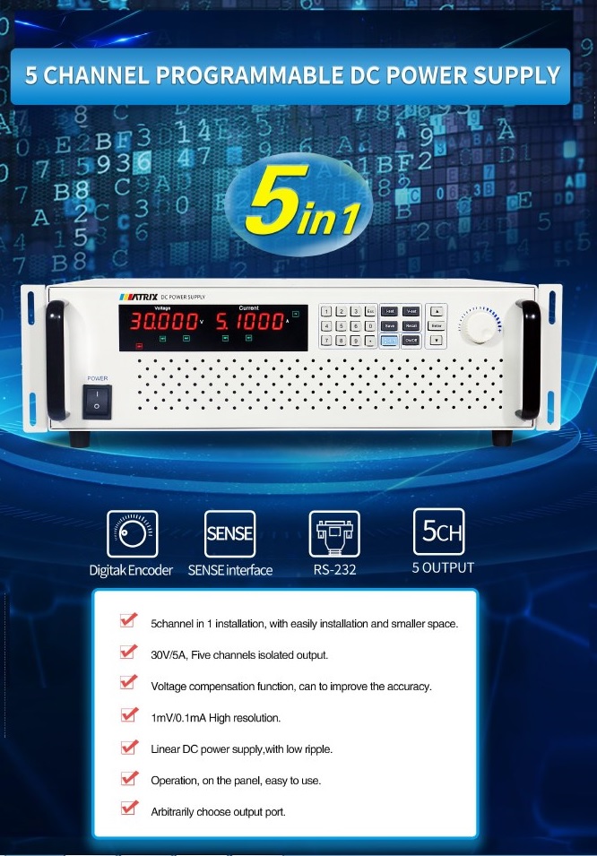 Компания MATRIX TECHNOLOGIES анонсировала выпуск новой продукции, а именно 5-канального программируемого источника питания постоянного тока.