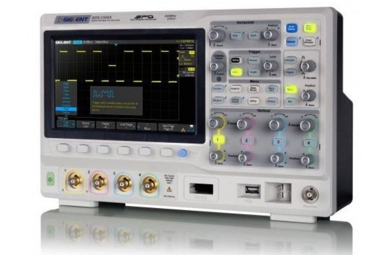 - 4-х канальные SDS1104X-E и SDS1204X-E c полосой пропускания 100 МГц и 200 МГц, скоростью выборки 1 ГВ/с, объёмом памяти 14 М точек, скоростью захвата осциллограмм: 100 тыс.форм/сек
