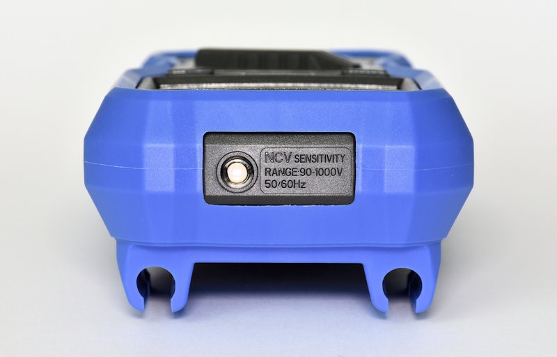 Сверху экрана расположен светодиодный индикатор, который начинает мигать при начале бесконтактных измерений напряжения. Этот индикатор также загорается при задействовании большинства функций мультиметра. Помимо сенсора NCV на фронтальной панели прибора, помещён белого цвета светодиод, выполняющий роль фонарика. Мультиметр обладает функцией автоматического отключения питания (APO), которая отключает прибор после 30 минут его бездействия.