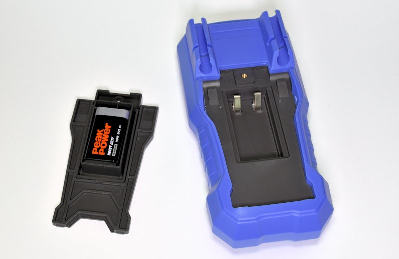 Батарея 9-V расположена в отдельном корпусе, который встроен в корпус самого мультиметра. Корпус батареи защёлкивается и удерживается винтиком