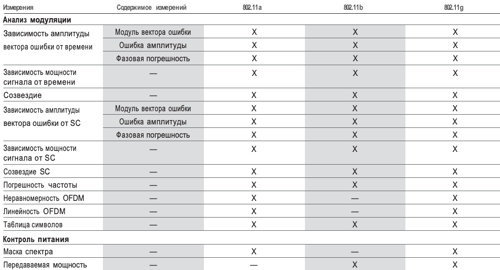 Измерения для технологии WLAN