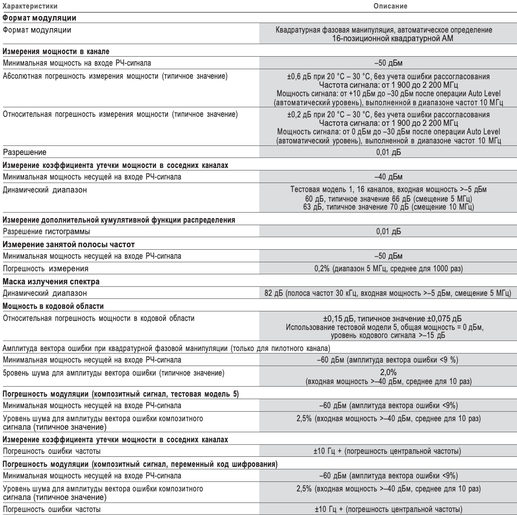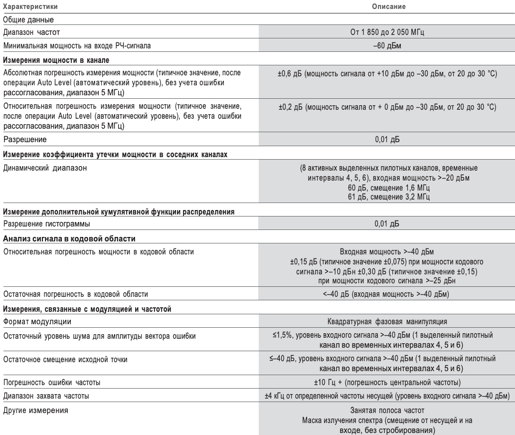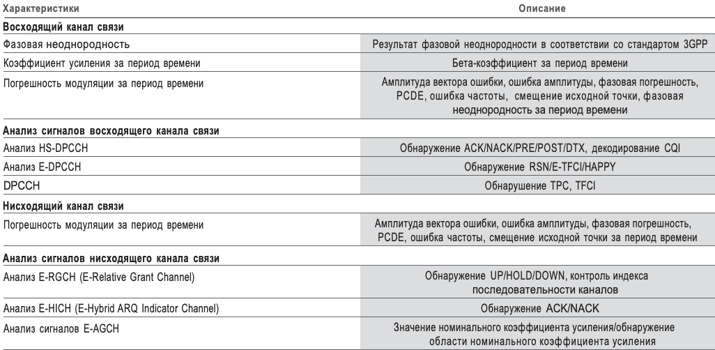 Выполнение основных измерений для сигналов прямой связи 1x EV-DO (3GPP2 C.S0032), а также обратной связи (3GPP2 C.S0033).