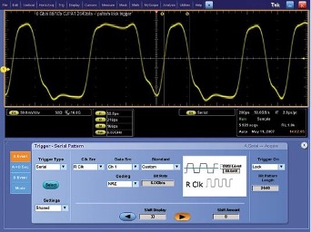 Для отладки последовательных интерфейсов существует возможность запуска по определенной комбинации потока NRZ со встроенным восстановлением синхронизации и корреляции событий по физическим и канальным уровням. Эта функция является стандартной для серии DSA70000B и доступна как опция PTH для DPO70000B. Приборы данной серии могут восстанавливать тактовый сигнал, определять транзакции и позволяют устанавливать желаемые кодированные последовательности для системы запуска. Опция PTH и серия DSA70000B способны работать с последовательными протоколами до 3,125 Гбит/с. Для стандартов с большими скоростями передачи (до 5 Гбит/c.), такими как USB 3.0, функции PTU для DPO70000B и STU для DSA70000B сособны запускаться и декодировать 8/10-битные комбинации.