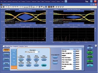 Точная, простая и настраиваемая система проверки и аттестации. Для разработчиков, которым необходимо проводить сертификацию различных устройств, приборы серии DSA70000B опционально могут быть дооснащены программными модулями для анализа и проверки на соответствие различным стандартам. Это позволяет сконфигурировать маску тестирования и граничные условия для проведения тестов типа «годен/негоден» таких стандартов, как PCI Express (опция PCE), Serial ATA и SAS (опция SST), FB-DIMM, (опция FBD), InfiniBand (опция IBA), HDMI (опция HT3), Ethernet (опция ET3), DisplayPort (опция DSPT), DVI (опция DVI), и USB (опция USB).