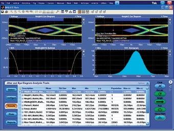Программное обеспечение DPOJET для анализа джиттера и построения глазковых диаграмм (опция DJA) упрощает обнаружение проблем целостности сигнала, джиттера и связанных с ними источников. DPOJET обеспечивает наивысшую чувствительность и точность среди осциллографов реального времени.