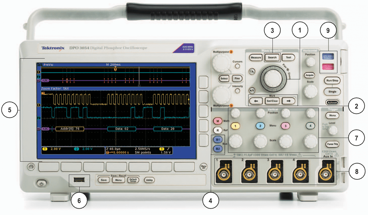 Ориентированный на нужды тех, кто работает с длинными записями, осциллограф серии DPO3000 оснащен инновационными органами управления функциями Wave Inspector: