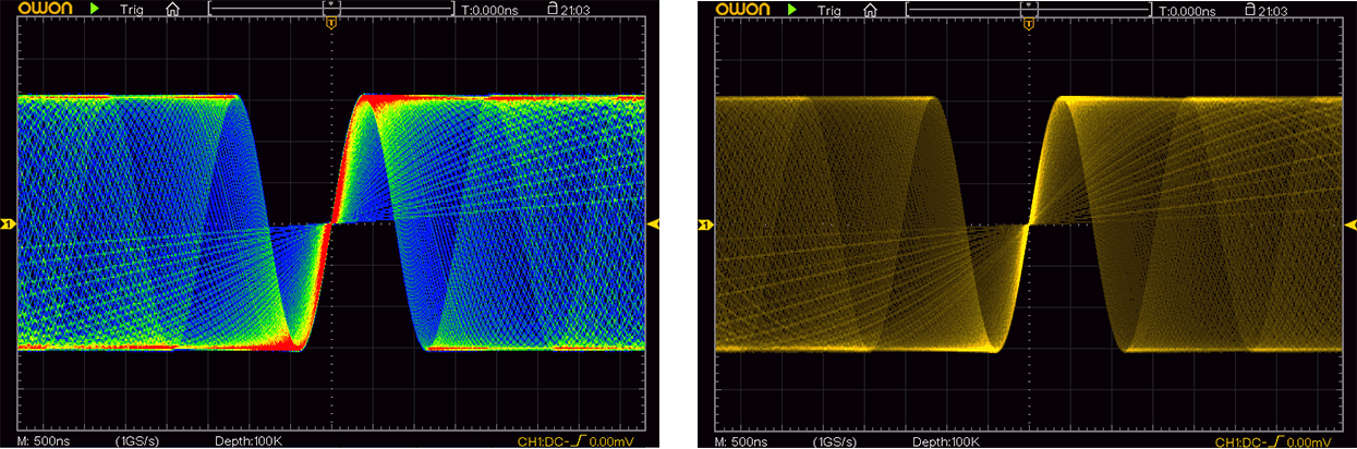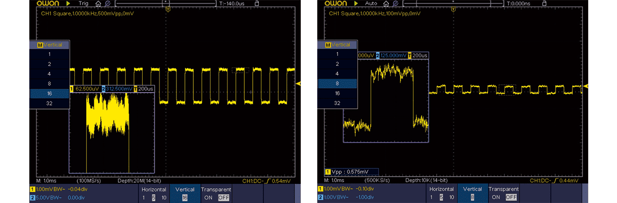 Серия XDS представляет 12/14-битный аппаратный АЦП, точность в 16/64 раза выше, чем у других осциллографов на рынке. Оснащенный оригинальной функцией увеличителя OWON, он может наблюдать сигнал вплоть до 31,25 мкВ/дел.