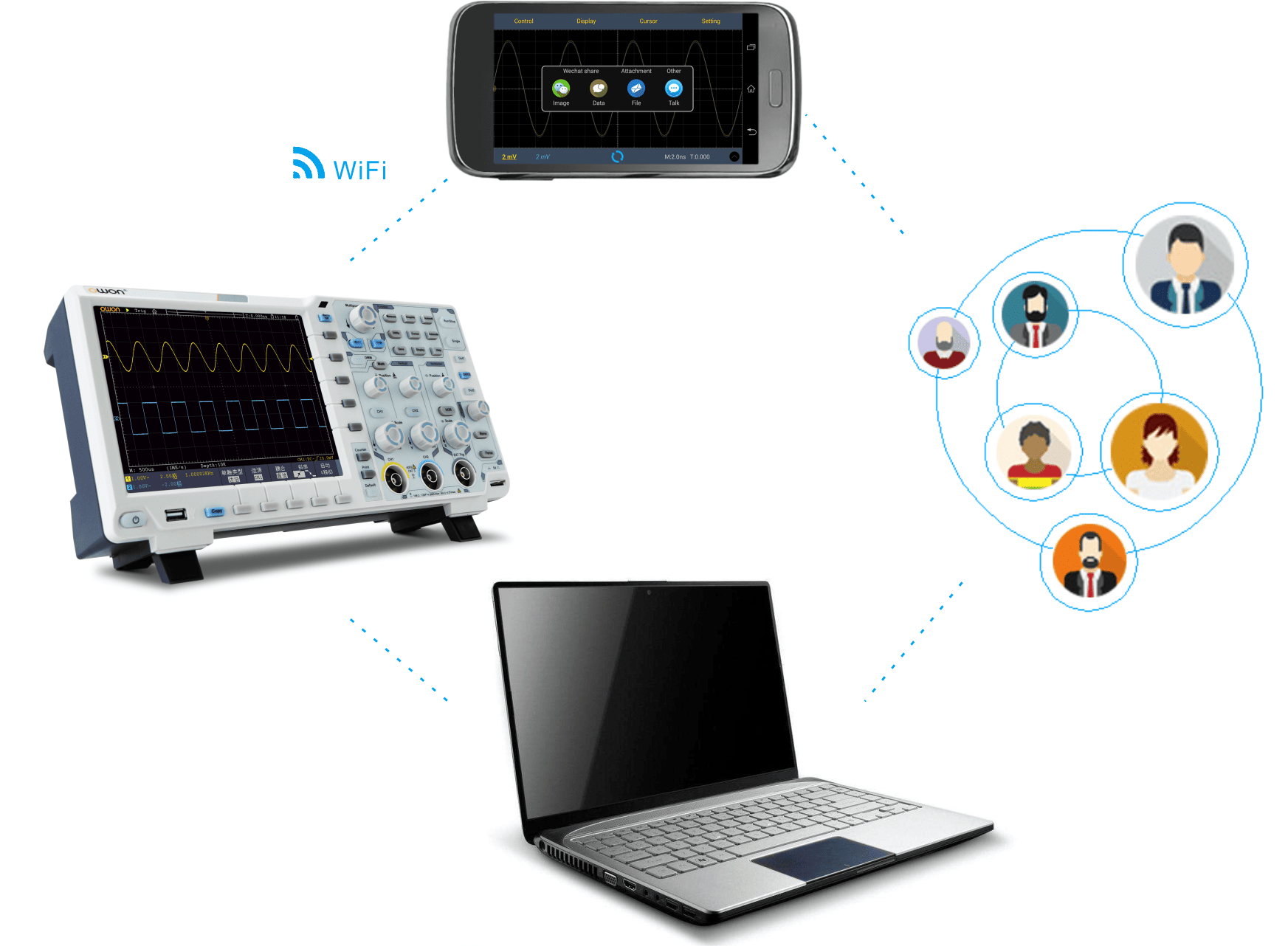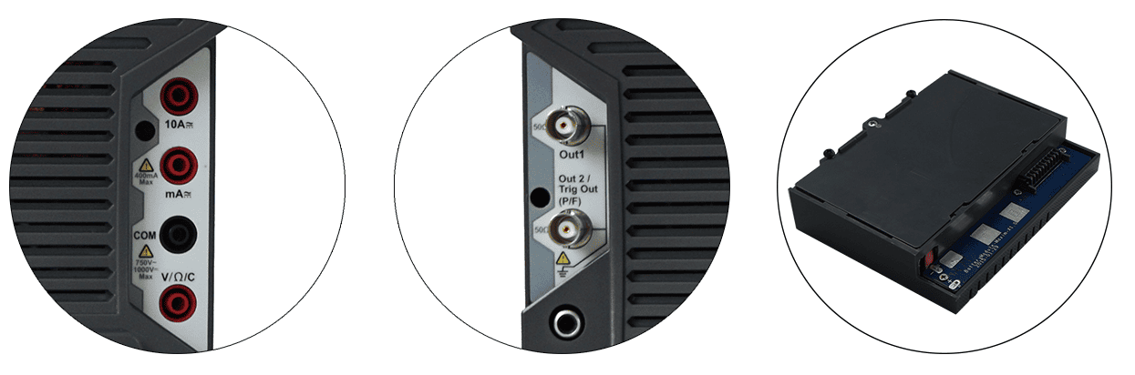 Для расширения функциональности доступны опции: функциональных генераторов AWG (1 канал х 25 МГц, 2 канала х 25 МГц), мультиметра. Декодирование протоколов RS232, SPI, I2C, CAN в стандартной конфигурации. Стандартная поставка включает интерфейсы 2хUSB, LAN, опционально Wi-Fi и VGA.
